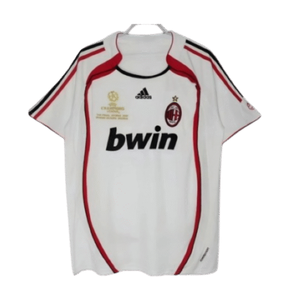 With its clean white base, classic red-and-black accents, embroidered AC Milan crest, and Kaká’s legendary #22 on the back, this jersey symbolizes flair, elegance, and unstoppable brilliance. From breathtaking solo runs to crucial goals, Kaká’s 06–07 season was nothing short of magic — earning him the Ballon d’Or just months later.